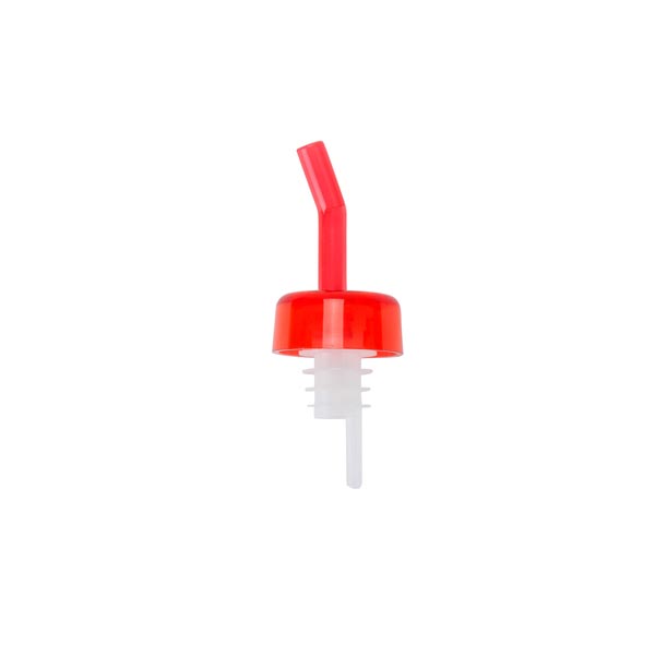 Serve mixed drinks quickly and efficiently with this Red Liquor Pourer with Collar from Tablecraft. This pourer has an extra-long curved spout to help you pour more precisely, eliminating spillage and cutting costs. It also highlights a collar that reduces dripping and helps the pourer remain firmly attached to the liquor bottle of your choice. This pourer is easily installed into liquor bottles. This simple, functional pourer is sure to be a great fit at any bar or restaurant.