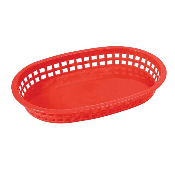 Ideal for any casual dining establishment, this Red Oval Plastic Fast Food Basket is a unique alternative to traditional plates. From sports bars and family-style restaurants to pool cabanas and another outdoor dining, it complements any inviting and fun atmosphere. Also, its lightweight design, transporting full meals is easier than ever. You can simply add deli sandwich wrap paper to the bottom of the basket to intensify your food presentation and catch any grease or crumbs before they make their way onto tables, counters, or floors.