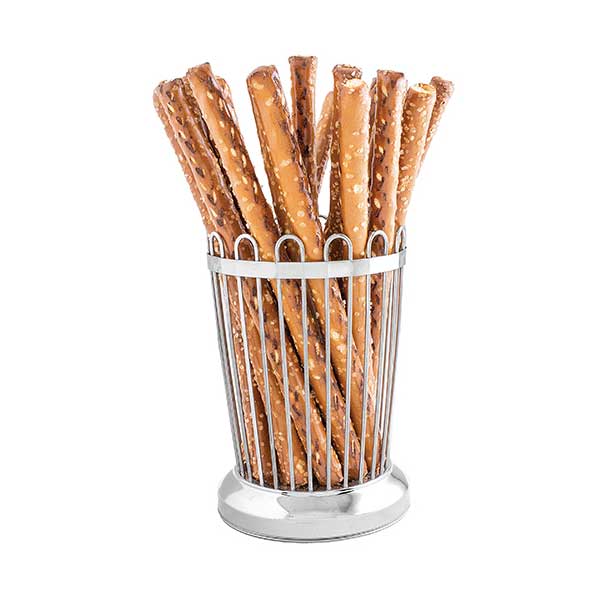 This Round Stainless Steel Regent Breadstick Basket – 3 1/4″ x 5 1/4″ from Talecraft is excellent for serving your signature breadsticks at your pizzeria, Italian restaurant, or other establishments. It’s also famous for serving a variety of other appetizers, from mozzarella sticks to French fries, to poppers. Created out of 18-8 stainless steel, this basket is firm and durable and highlights a sleek design. Use this beautiful Tablecraft product to serve your signature appetizers in style.