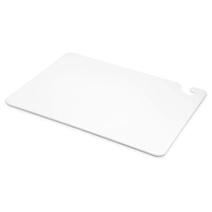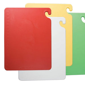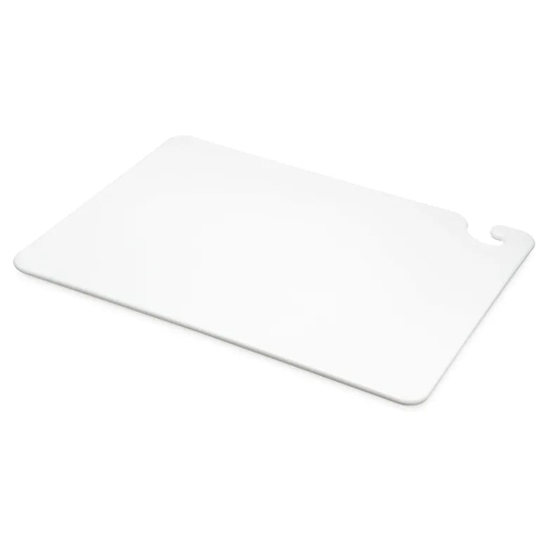 To help reduce the risk of cross contamination during food prep, the San Jamar CB121812GN Cut-N-Carry® cutting board comes in green—a color that works well for color-coding applications. At 18 inches wide by 12 inches deep and 1⁄2 inch high, the board provides ample space for chopping fruits and vegetables. Made of a durable co-polymer, it defends again heat, chemicals, and warping for longevity. After it's cleaned in a dishmachine, this board can be hung up with its signature food safety hook.