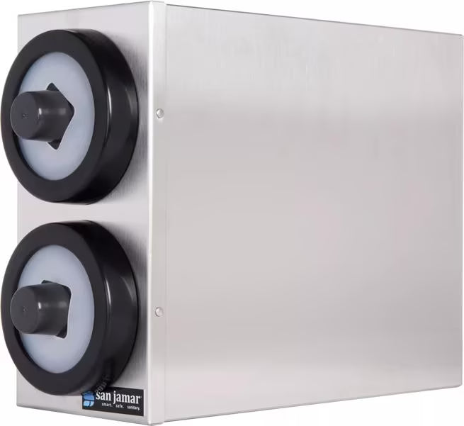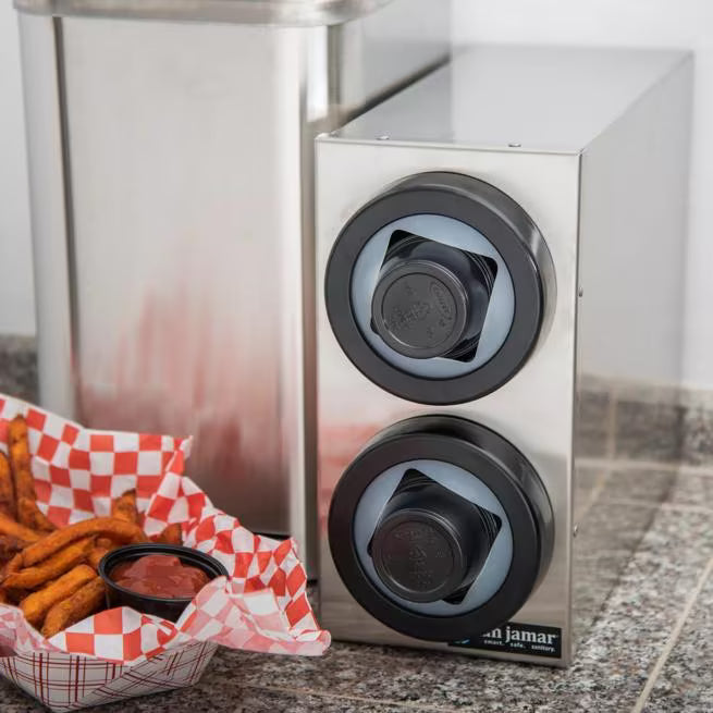 San Jamar C9002 Stainless Steel 2-Slot Vertical 1/2 - 2 1/2 oz. Countertop Portion Cup Dispenser Cabinet