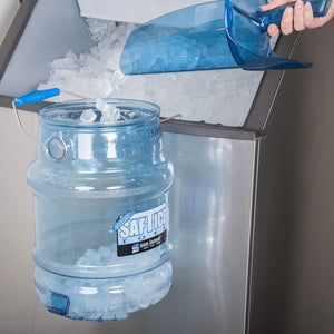 Ergonomic Handle – Integrated handle with raised Tri-grips allow for secure pouring of up to 25 lbs. of ice Ice Machine Hanger – Patented HACCP Hanger attaches to ice machines