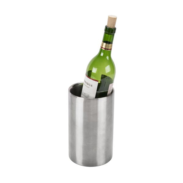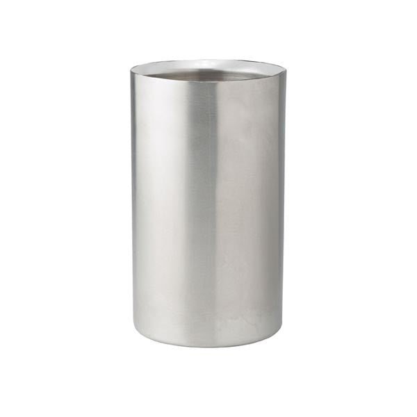 Keep wine chilled and ready to serve for up to 4 hours with this Stainless Double Wall Wine Cooler from Winco. Its double-wall design gives ultimate insulation, providing excellent temperature retention. Excellent for table service or self-serve wine service, this cooler has a simple yet modern appeal. Its smooth cylinder shape and lines will delight your guests and are sure to complement the decor of your restaurant, hotel, buffet, or catered event! Its stainless steel construction is strong and sleek.