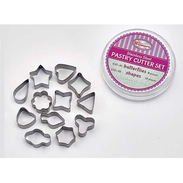 Create perfectly shaped cookies or fondant cutouts with this Stainless Steel 12 Piece Cookie Cutter Set. Each piece in this set boasts a traditional tin construction. Mix and match the