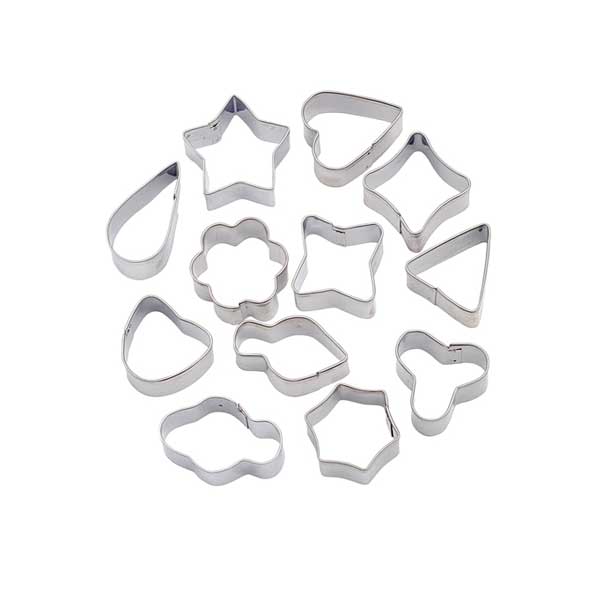 Create perfectly shaped cookies or fondant cutouts with this Stainless Steel 12 Piece Cookie Cutter Set. Each piece in this set boasts a traditional tin construction. Mix and match the variety of shapes to build a fun and dynamic display at your next outdoor event. Also, use these pieces to serve aspic or fruit jelly in your restaurant or diner.