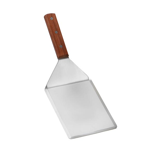 Quickly and easily flip meats, poultry, and vegetables on your flat top griddle with this Stainless Steel 13″ Food Turner with Wood Handle from Tablecraft. Highlighting an oversize straight blade for cutting through product, this turner is excellent for chopping steak, chicken, and vegetables during the cooking process. The oversize size does it great for raising an ample amount of product at once, and since it has a cutting edge, there’s no need to pre-cut meats and vegetables as this turner will do the job for you as you go.