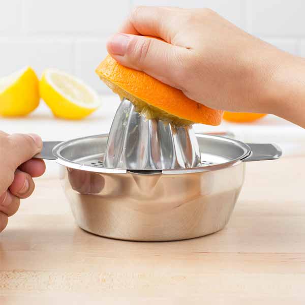 Pleasure customers with freshly made orange juice with this stainless steel Citrus Juicer. Because of its stainless steel construction, the tool won’t degrade with citric acid contact, providing you with a reliable, long-lasting product. For ease of use, the bowl features side handles, which makes it easy to pour the juice into a glass or other container. It has got the stability and leverage needed for thorough juicing.