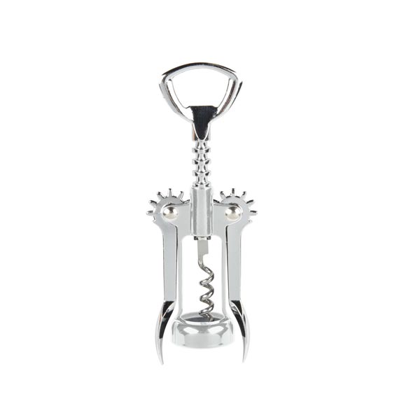 This classic hand-held winged corkscrew is an attractive piece to have on hand in either your home or commercial kitchen. It is made of stainless steel material and gives it a shiny appearance that complements any commercial kitchen, bar, or home. This style of opener features two wings for controlled operation, and each wing has a rubberized cover gripped handle for the ultimate control and durability.