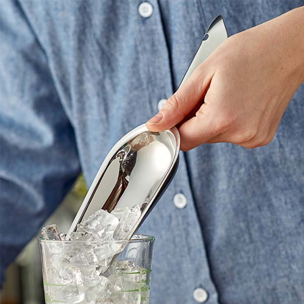 Safely serve your ice with the utmost ease and efficiency using this 4 oz. stainless steel ice scoop. Designed to guard against cross-contamination, this piece comes with a long handle