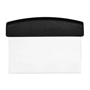 Designed to simplify food preparation, this stainless steel dough cutter / bench scraper is a must-have tool in any kitchen! Not only can it slice through dough to portion rolls or pizza bases, but it helps scrape up leftover dough at the end of prep. White polypropylene handle provides a comfortable, sturdy grip. 6" x 3" blade