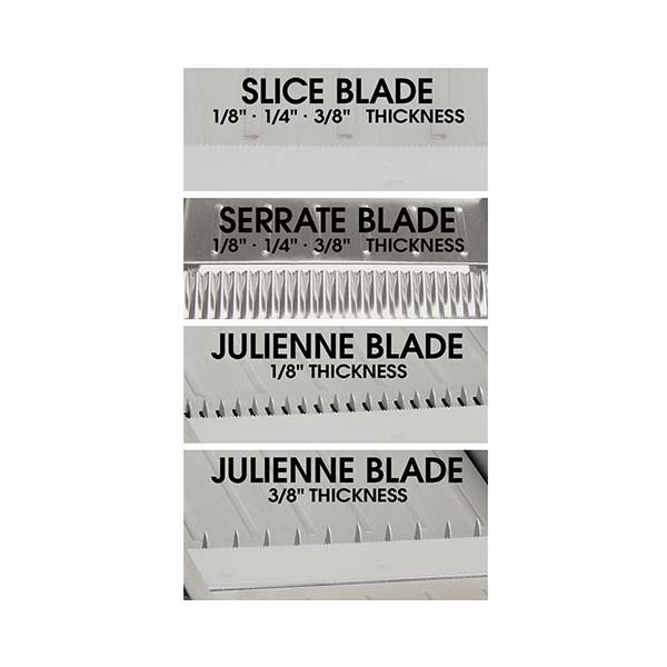 Easy-to-use, the Stainless Steel Mandoline Slicer Set with Built-In Blades from Winco will be your go-to kitchen utensil for slicing and serrating fruits and vegetables. Highlighting built-in straight, serrated and julienne blades, this mandoline slicer is fully combined so you will never lose or misplace a blade again. With its rotary adjustment dial, a rubberized non-slip grip handle, stainless steel hand guard and body, and food holder, you can easily place the desired fruit or vegetable into the food holder, adjust the blade settings and desired thickness, and start slicing.