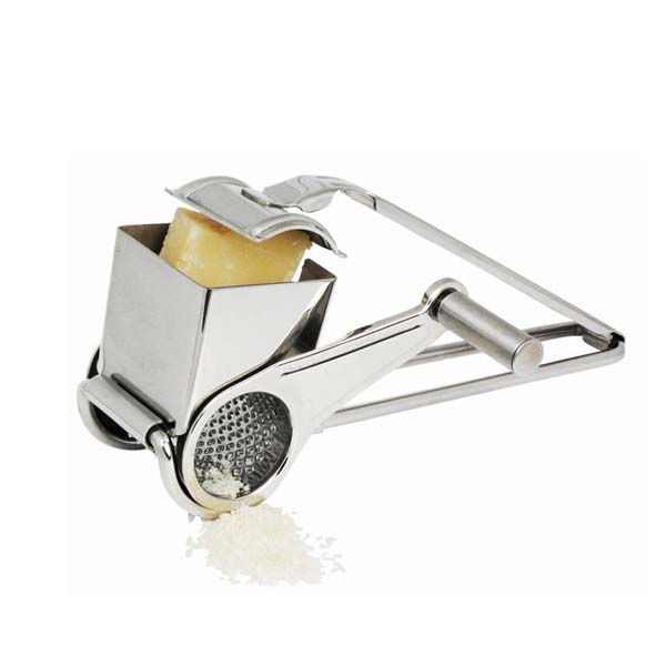 Quickly produce finely grated cheese for your pasta and other dishes using this Stainless Steel Manual Cheese Grater with Drum from Winco. Built with an easy-crank handle, this grater explains the task of grating cheese for your dishes and is ideal for both right and left-handed users. Made from 18/8 stainless steel, this rust-resistant grater will sustain years of heavy-duty use.