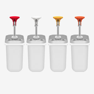 Push button Dispensers are produced from high quality stainless and plastic parts. You can easily distinguish the sauce with different color options. Thanks to the adjustable ring, it provides the opportunity to serve the amount you want. Fountain Jars can easily drop-in to kitchen countertops and will allow you to create your own Sauce dispensing work areas.
