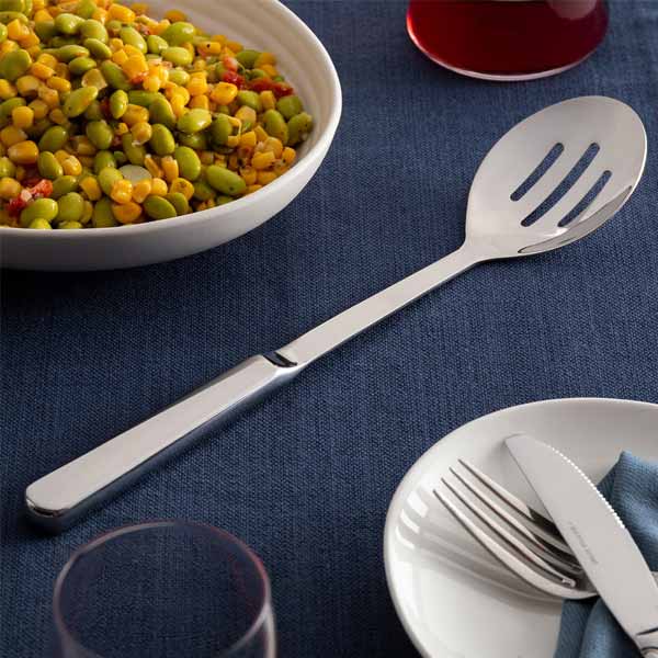 Serve your signature dishes in style with this Stainless Steel Slotted Serving Spoon with Hollow Handle from Tablecraft. Made with durable stainless steel construction, this solid spoon is built to last in your busy restaurant. The elegant style with a polished finish makes it particularly perfect for front-of-house use at buffets, catered events, or parties.