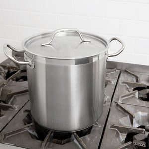 Specifically designed for high volume use and often used for a number of tasks in the kitchen, this stock pot with cover is perfect for throwing together a soup-of-the-day, steaming fresh vegetables, or whipping up a batch of creamy mashed potatoes. Thanks to its tall and narrow shape, this versatile pot allows liquids to bubble up through food and extract maximum flavor.