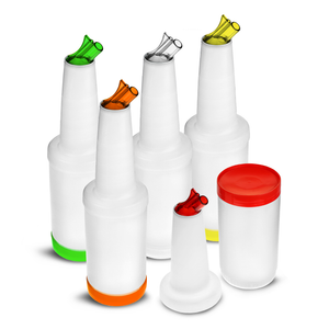 This Store ‘N Pour Bottle, 0.5 Litre is made of high-density polyethylene and boasts straight walls with no sharp interior edges, guaranteeing it won’t collect food particles or harbor bacteria. While the added neck provides your employees with a secure grip as they pour drinks for customers, the spout keeps contaminants out and helps fast controlled pouring. When it’s time to store your product, simply screw the cap on in place of the neck and place it in the refrigerator.
