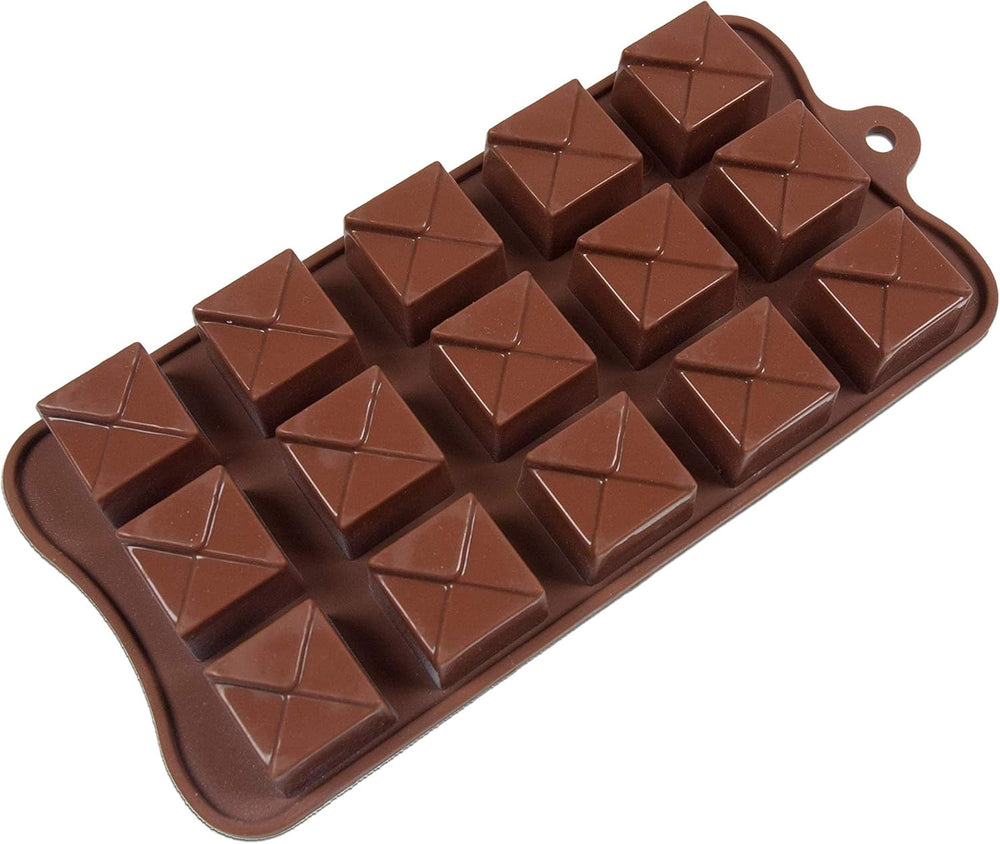 This tiered square silicone chocolate candy mold typically refers to a mold made from flexible, food-grade silicone, featuring a tiered or stepped square design within its cavities. These molds are designed to create chocolates or candies with a visually appealing layered or geometric look. They are often used for making chocolates, candies, jellies, or even soaps with a unique, stepped square design.