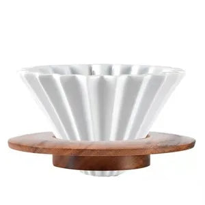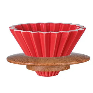 V60 CERAMIC DRIPER FUNNEL WITH WOOD RING 1-2 CUP BLACK - WHITE - RED