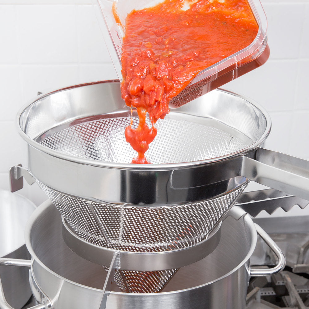 Made of durable, 304 series stainless steel, this strainer is built for long-lasting service in any commercial kitchen. Its convenient bowl clip also hooks onto basins and pots for superior stability and hands-free straining. Whether you're looking remove seeds or large chunks from gravies, dressings, or purees, this Vollrath coarse china cap strainer is sure to do the trick.