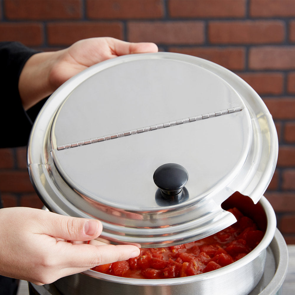 Designed for use with a variety of Vollrath products from double boilers to insets, this Vollrath 47488 9 5/8" hinged cover helps keep your offerings warm, fresh, and free of