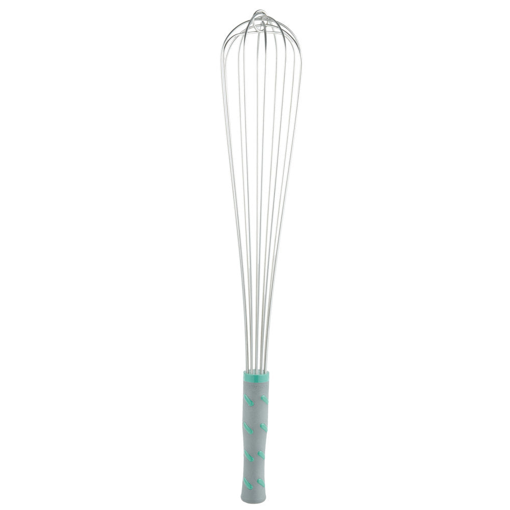 This French whisk is designed with stainless steel wires to resist corrosion and rusting. The completely sealed handle ensures that there are no crevices to collect food or bacteria. It's heat resistant up to 475 degrees Fahrenheit for optimum versatility, too. Use this type of whisk in your bakery, restaurant, or cafe to concoct your signature menu items with ease.
