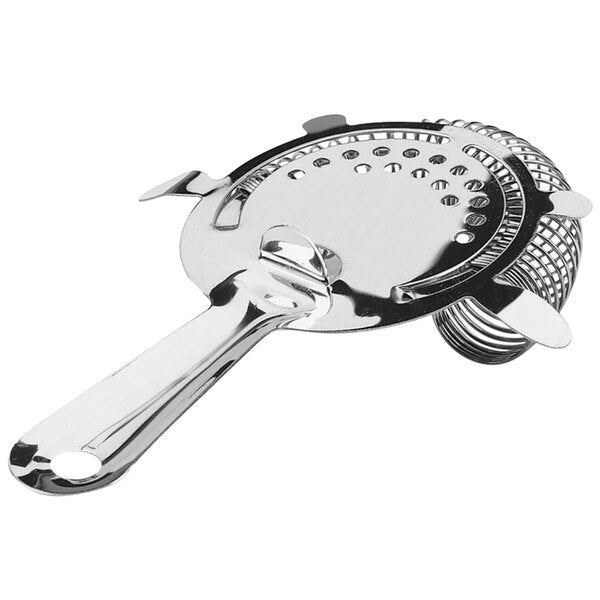 - Create your delicious signature cocktails with the help of this Vollrath 46787 stainless steel four-pronged cocktail strainer! A necessary addition to any bartender's arsenal, this strainer allows you to strain your cocktails for a fresh, debris-free drink that's ready to be served to guests. Failing to effectively strain mixed drinks is a recipe for disaster, and usually results in both a sloppy presentation and unsatisfactory beverage. This tool has a spring that expertly filters and catches ice and other solids, and the perforations provide smooth, efficient pouring for the perfect cocktail.