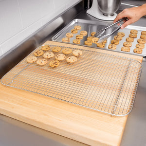It can be hard to remove stubborn, baked-on food particles, so save yourself time and effort in the cleaning process by cooking smarter, footed cooling rack! This full size rack
