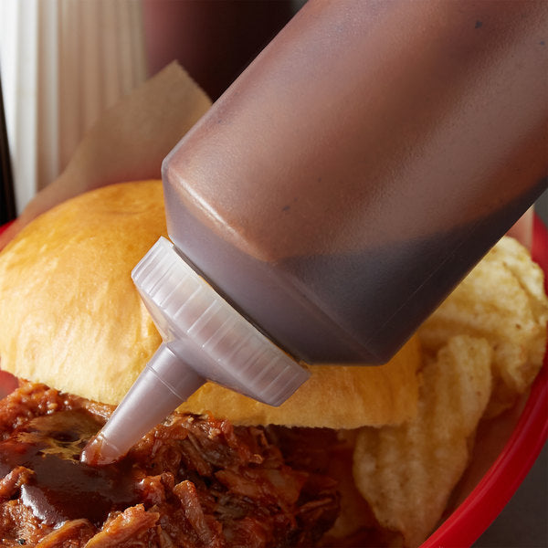 With this bottle, you'll be able to provide easy, mess-free service, every time! The clear color makes it great for dispensing oils with a neutral color, while the single tip cap is optimal for control and precision while dispensing. To help maintain a clean, professional establishment, the cap twists on to seal in your product, helping to prevent unnecessary spills and messes. At the same time, the durable, yet flexible polyethylene bottle is easy to squeeze for fast application of ketchup, mustard, signature sauces, dressings, or any of your favorite condiments. The translucent bottle allows you to easily identify the contents and track fill levels at a glance, and you can pair it with other colored bottles from this line for quick identification ta a glance. Thanks to the clearly embossed capacity graduations, your staff can easily measure out condiments to help monitor portion control. Additionally, the ridged style of the bottle helps to improve your grip for efficiency.