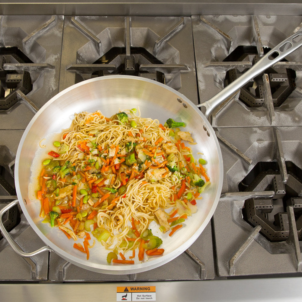 - Featuring tall sides to minimize splatter, this Vollrath 68747 Wear-Ever Classic Select 7.5 qt. straight sided heavy-duty aluminum saute pan with TriVent chrome plated handle is perfect for browning, searing, and stir-frying in any commercial kitchen. Made from a durable construction and boasting a smooth surface, this pan is even easy to clean when you're done cooking!