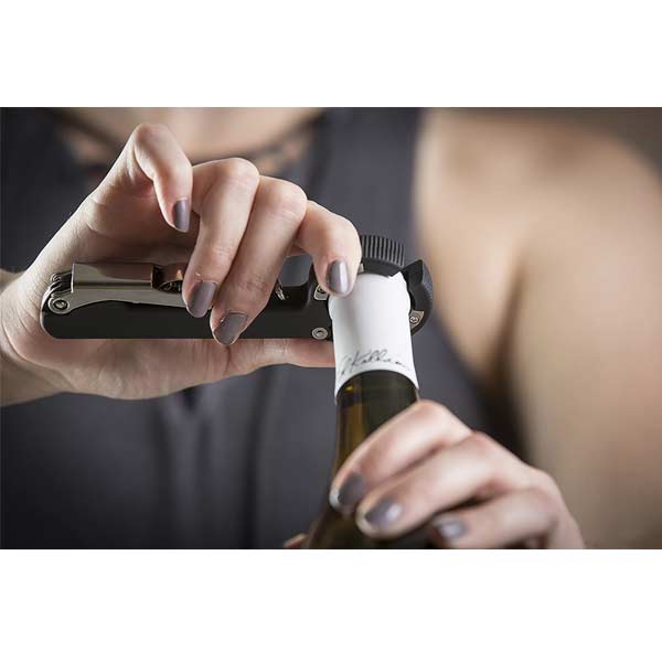 This corkscrew is an all in one necessary tool for any wine lover. The foil cutter unwraps your chosen wine while the corkscrew makes uncorking a breeze. Also, this tool is perfect for restaurants, wineries, and catered events. It is easy to clean and dishwasher safe
