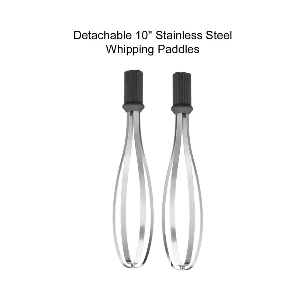 - Dishwasher-safe, removable, stainless steel whipping paddles
