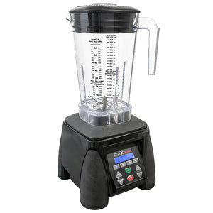 Controls are electronic with adjustable speed and two pulse buttons for controlled blending. Because the unit has four programmable buttons, employees can quickly produce food without needing to manually operate the different cycles. Information is convenient to read on the backlit LCD screen, and the controls are on a membrane that wipes clean. To conserve space, the Waring MX1500XTX blender has stackable Raptor jars.