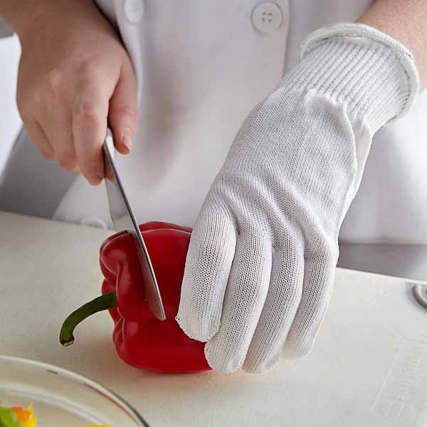 Designed to decrease the occurrence of injuries, this White A4 Level Cut-Resistant Glove – Large will instantly increase the safety and speed of your commercial kitchen’s processes. The ambidextrous design guarantees the glove can easily fit on either the left or right hand of each staff member, adding versatility and prompt access to safety measures in your kitchen.