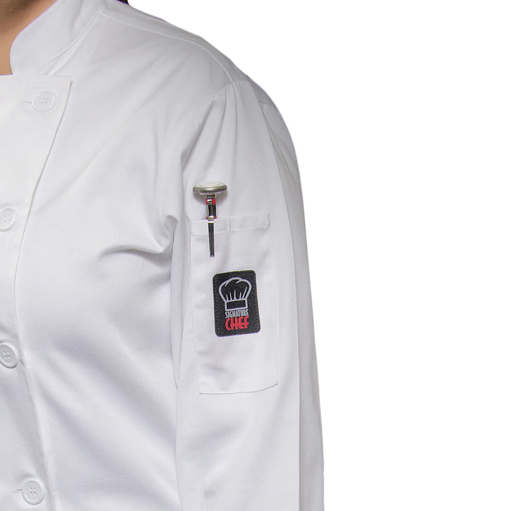 - Tapered – Subtle tapering gives the chef jacket a formal silhouette