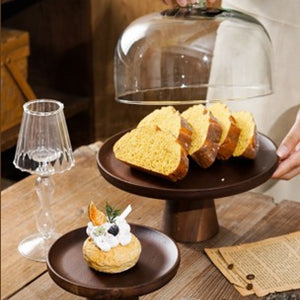 WOODEN CAKE STAND WITH GLASS DOME LID - KNICER