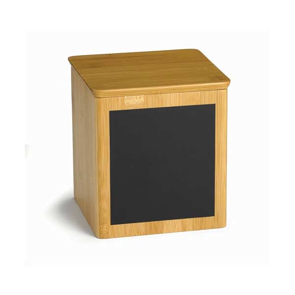 Write-On 6" x 6" x 7" Bamboo Square Polypropylene Lined Storage Container with Chalkboard / Tablecraft