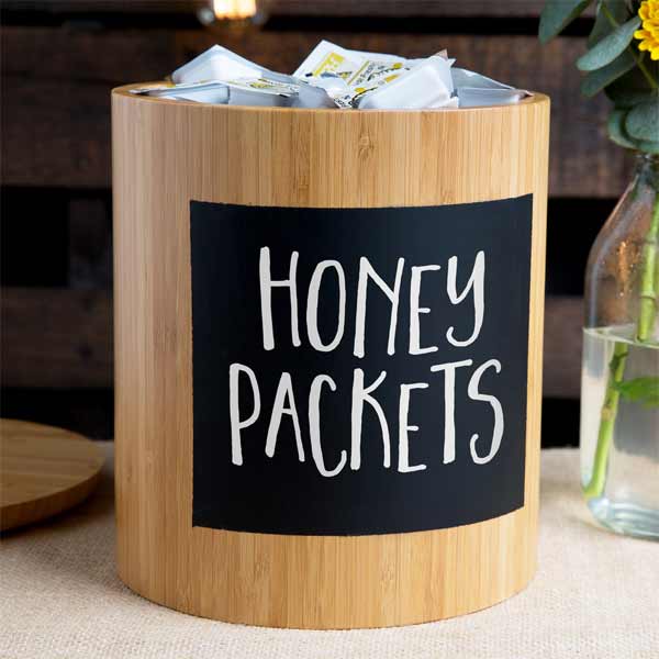 Made with versatility in mind, this creative piece can be used as a storage container or a riser. It has a polypropylene liner that makes the inside of this container astonishingly easy to clean. Whether you’re using this bamboo container to raise a basket of freshly baked bread or filling it up with candy for sale at your register, the opportunities are endless. The bold black background gives a contrast to white or brightly colored writing so the label is easy to read, even from a distance. Every container is made with bamboo for an earthy, organic look.
